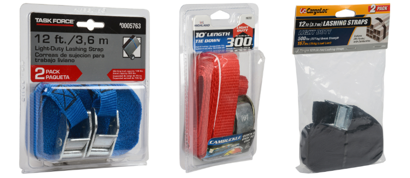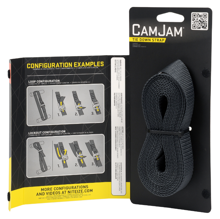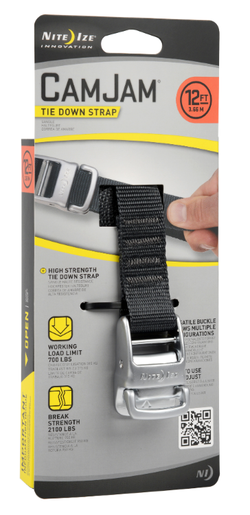 Packaging structure and graphic design for a tie down strap. The main differentiators of the product itself over similar straps are a buckle allowing multiple different tie down configurations and much higher quality materials and design.