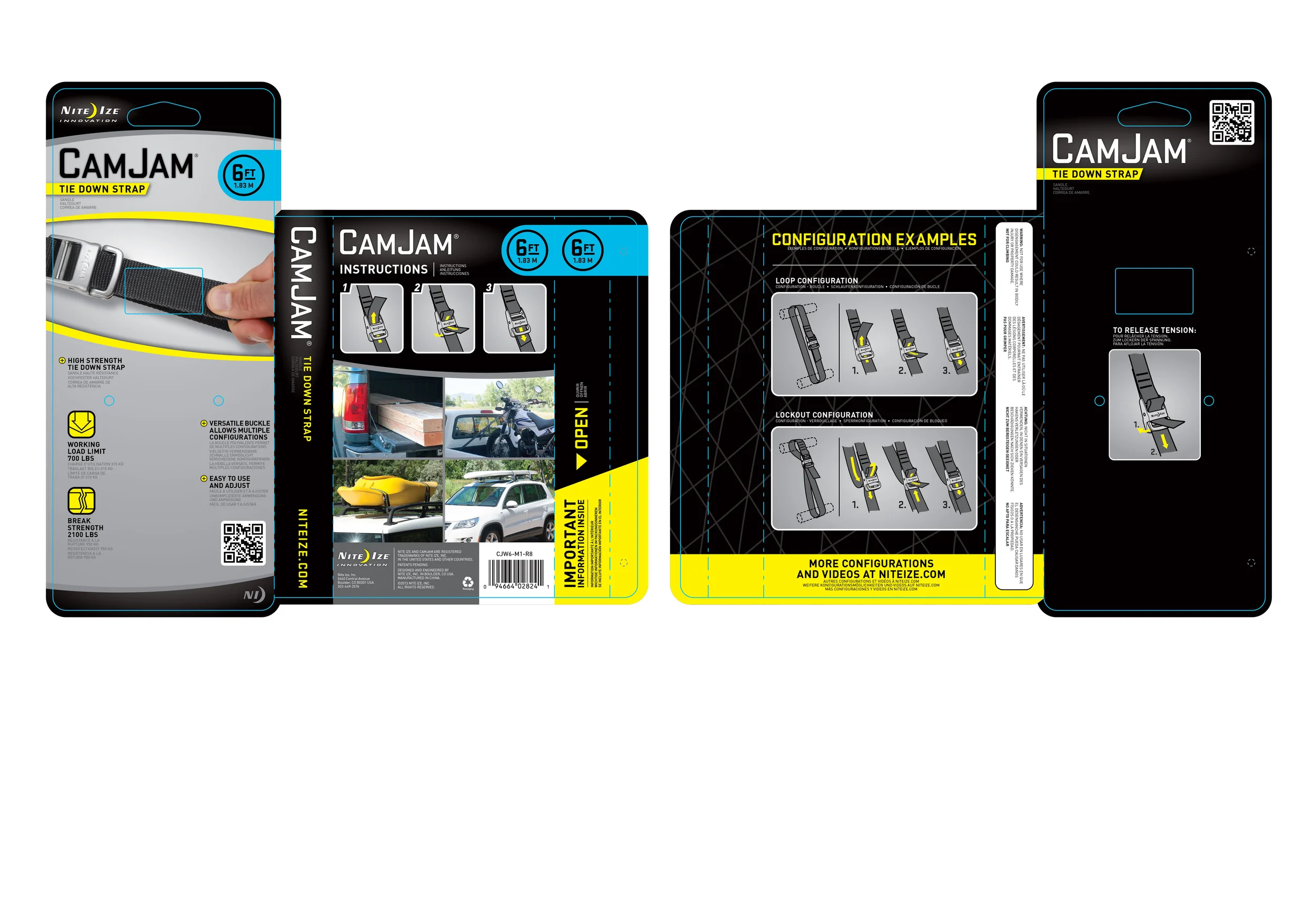 Structure design began by competitively shopping similar products in the tie down sections of stores where this item was intended to be sold and finding that competitors all had cheap looking packaging with products completely sealed in a clamshell or plastic bag with little thought given to product presentation. As a result, the final form for the packaging makes the buckle the main focal point and keeps it accessible for shoppers to interact with on shelf. The strap is moved to the inside of the package, where it remains accessible but allows more real estate for graphics on the package front. A folding back panel adds space to show the different configurations that are possible with the strap and include other necessary information.
