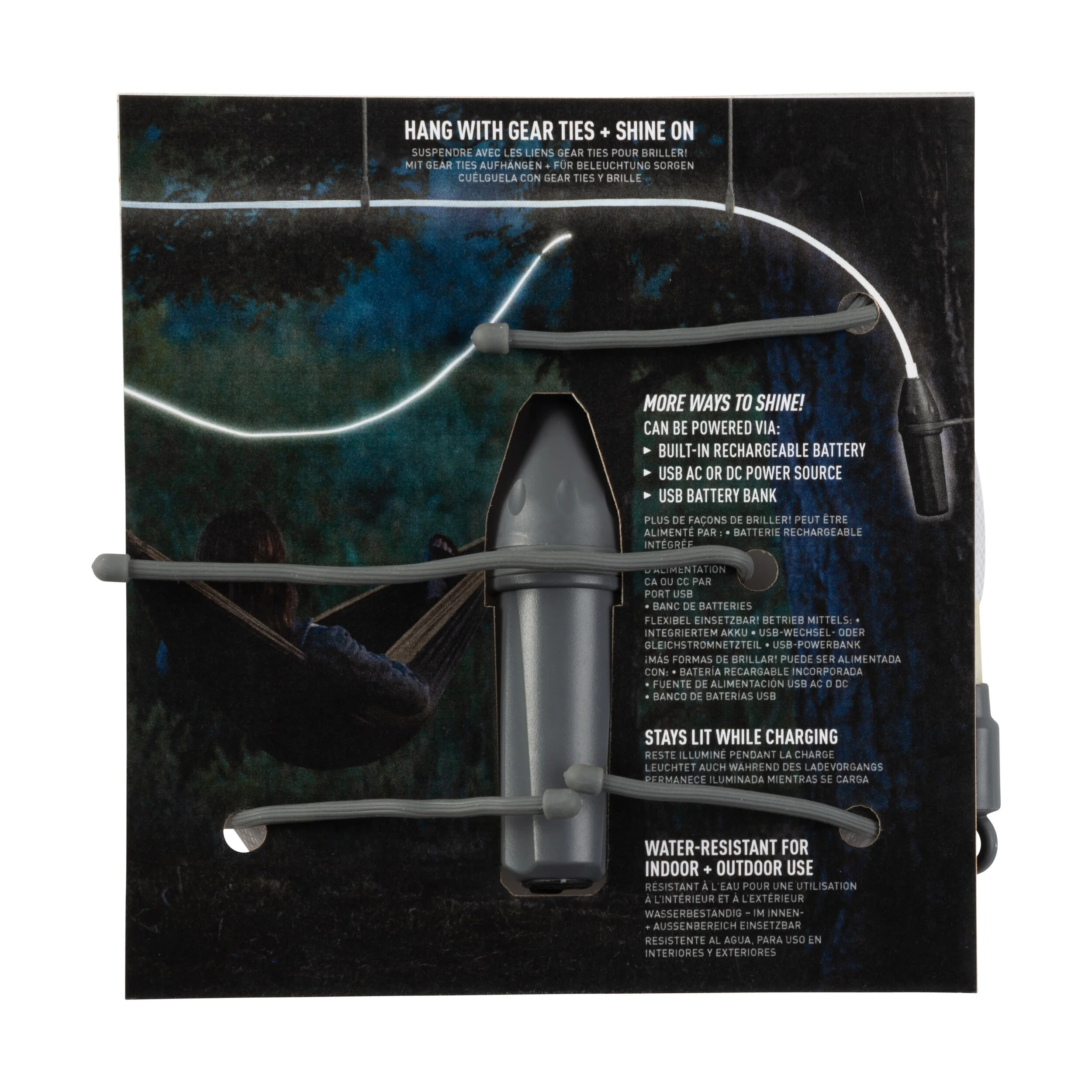 Packaging design and art direction for a rechargeable string light. This project began with two primary goals: convey a sense of product quality with the package structure and graphics, and create packaging artwork that allows placement in several different retail markets.