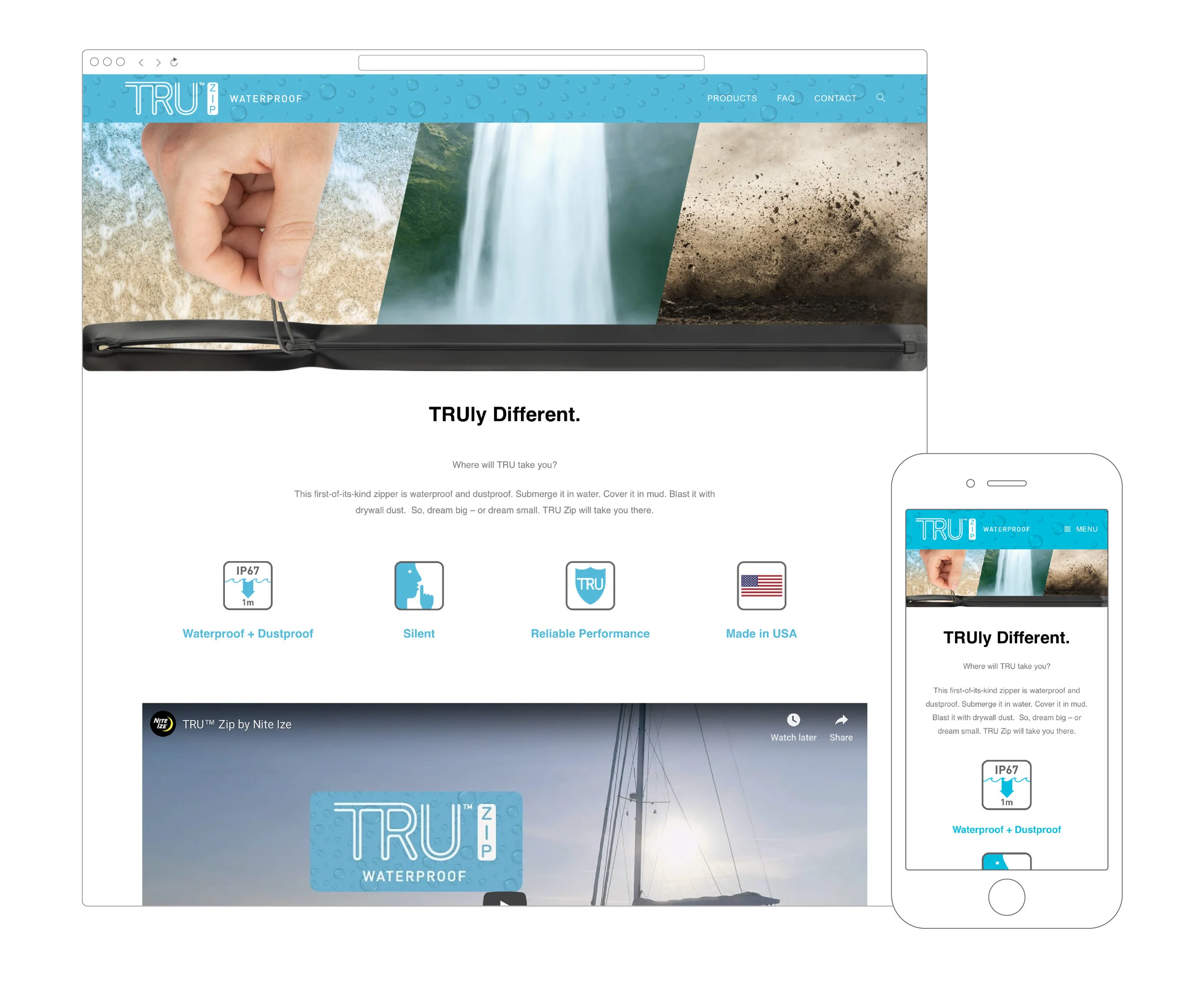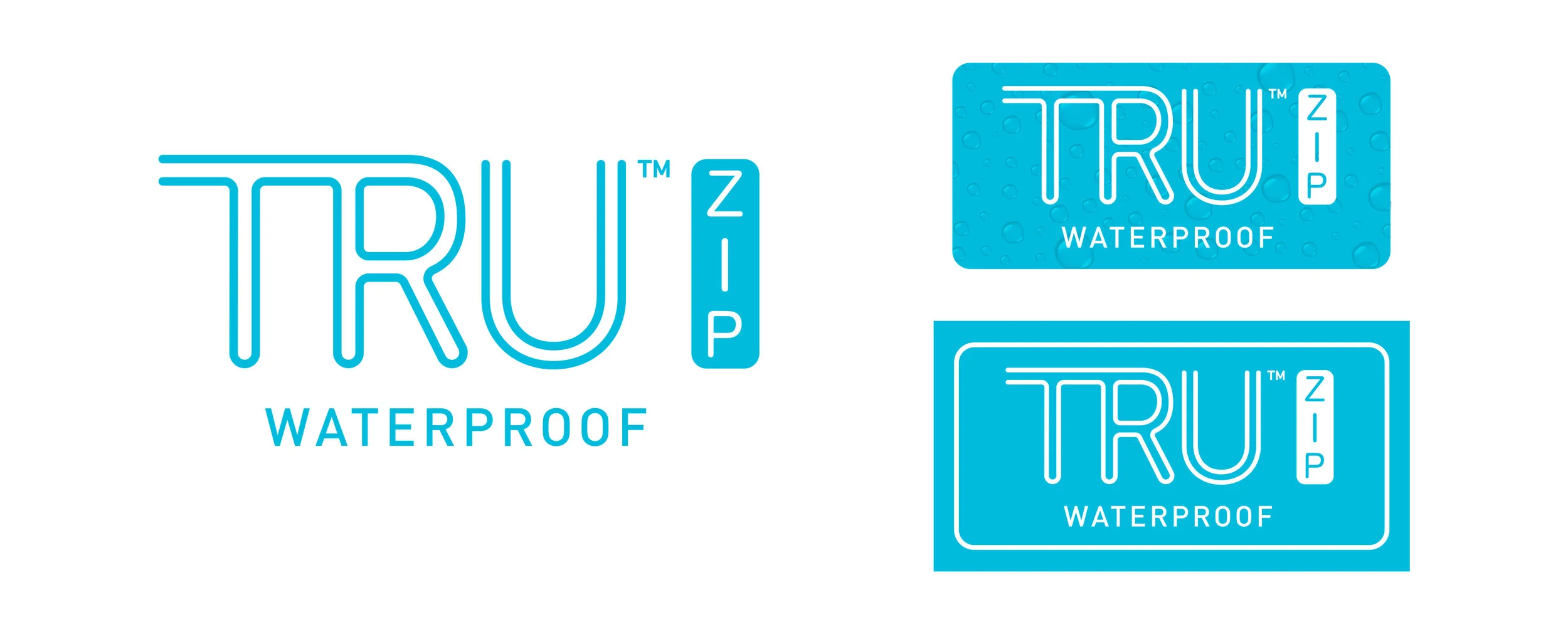 The design of the TRU Zip wordmark is based on the unconventional construction of the product itself, where the zipper creates a seal with interlocking rails instead of the teeth found in traditional zippers. The “Waterproof” tagline was added to ensure that the primary feature of the product is prominently shown whenever the logo is used. A logo and lockup usage guide was also created to ensure its consistent use across different marketing mediums.