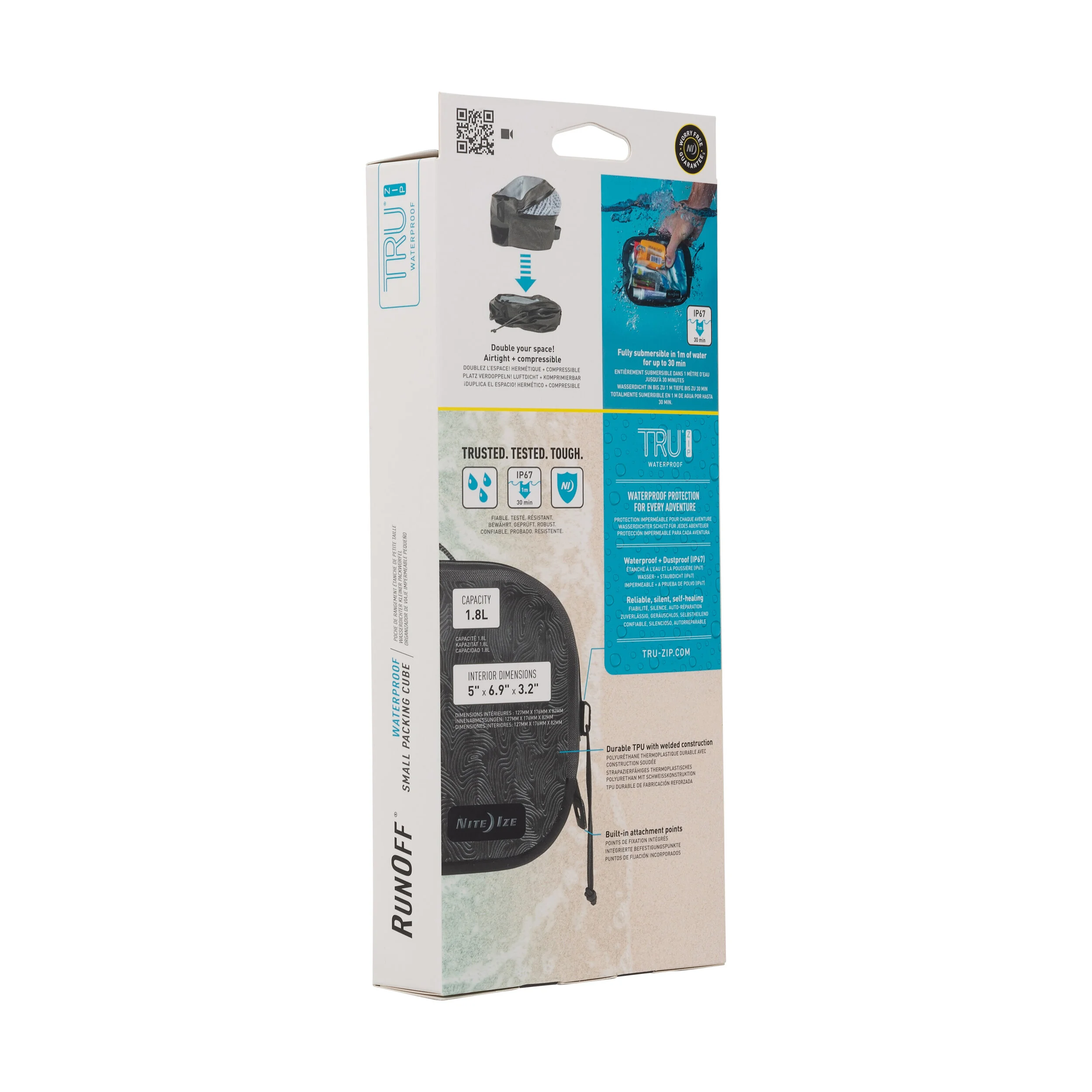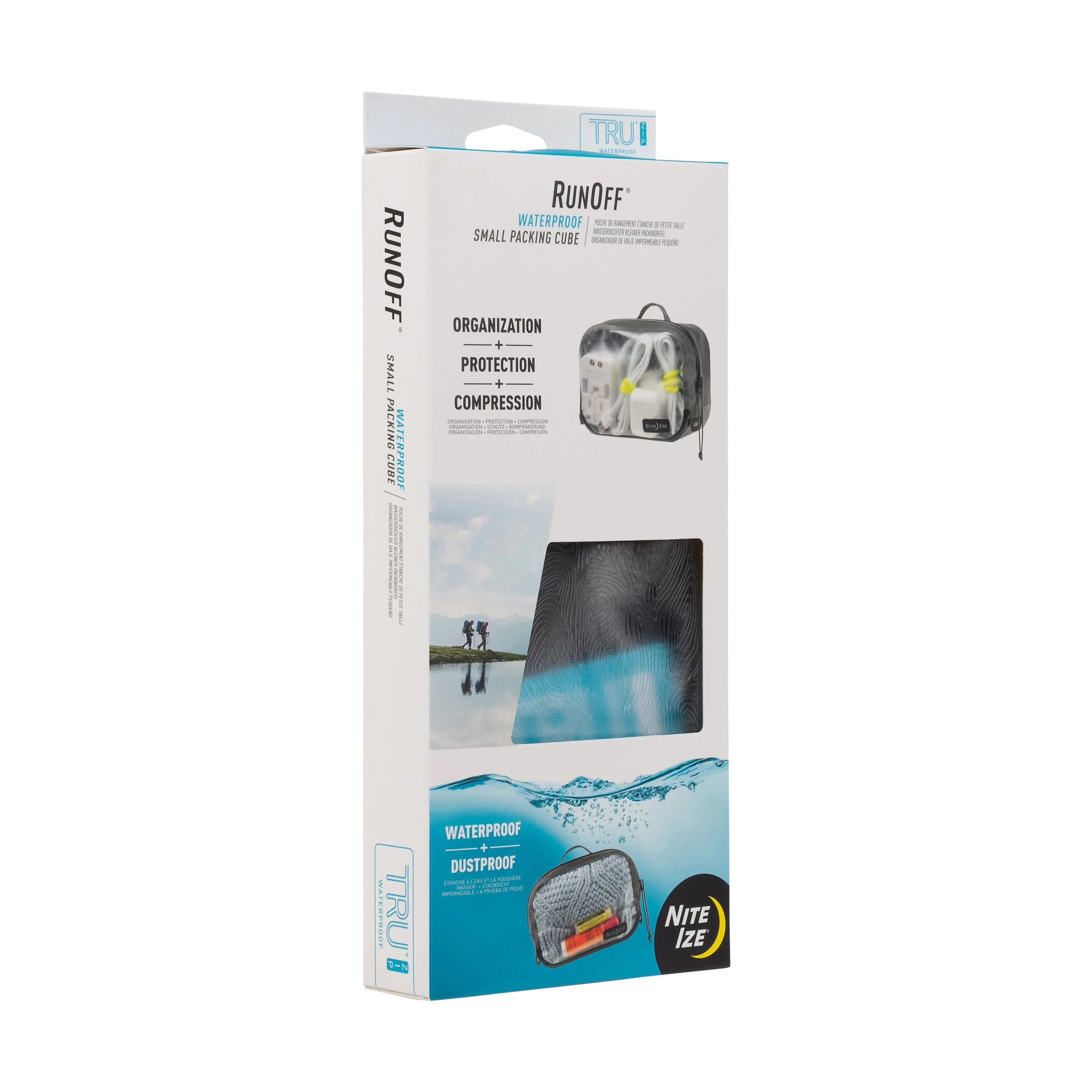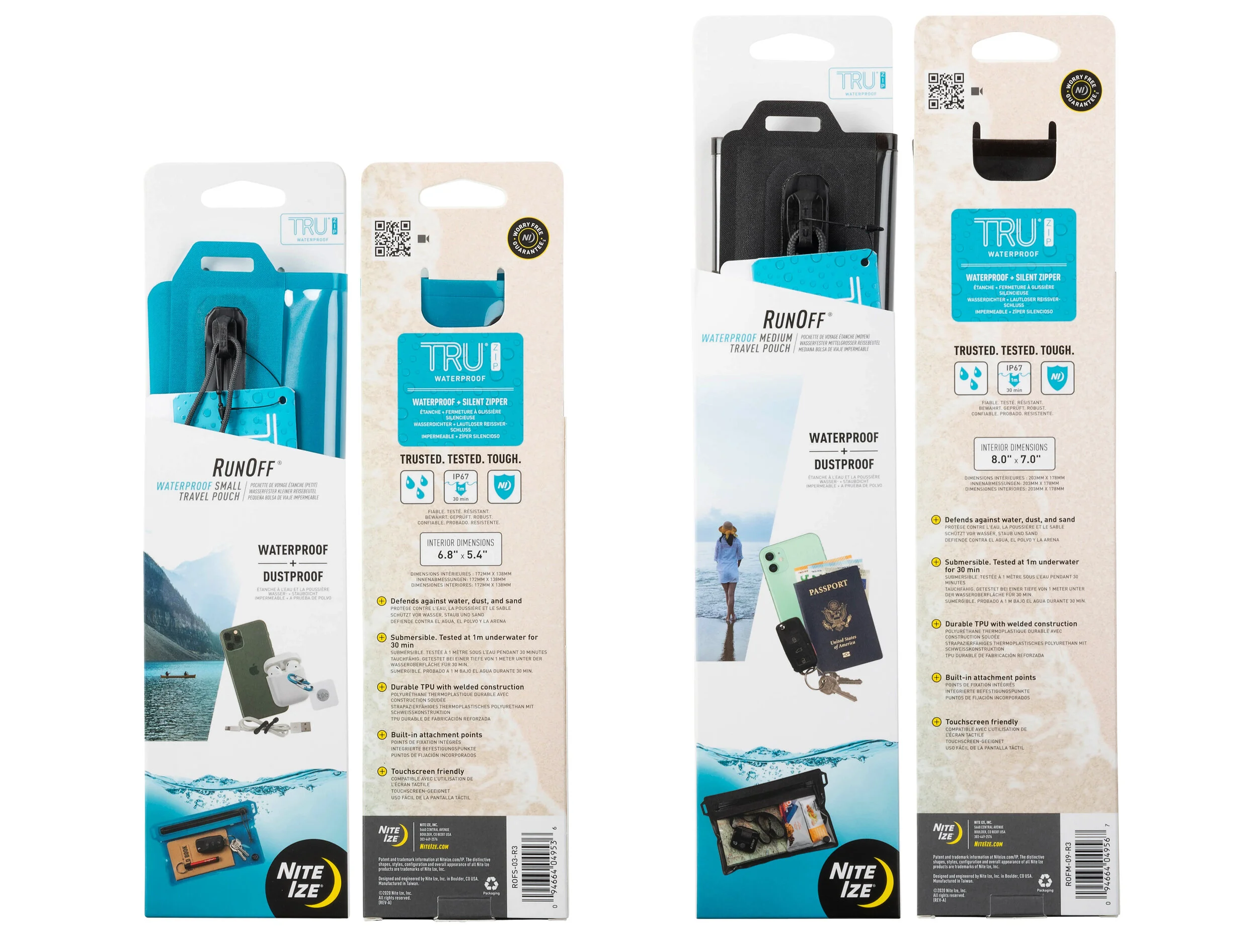 An additional packaging cube was added to the RunOff line and packaged in a box instead of with a hang tag. The box packaging increases space for graphics to convey the uses and benefits of the product over non-waterproof competitors and to include additional information that was frequently requested by retail buyers and end consumers.