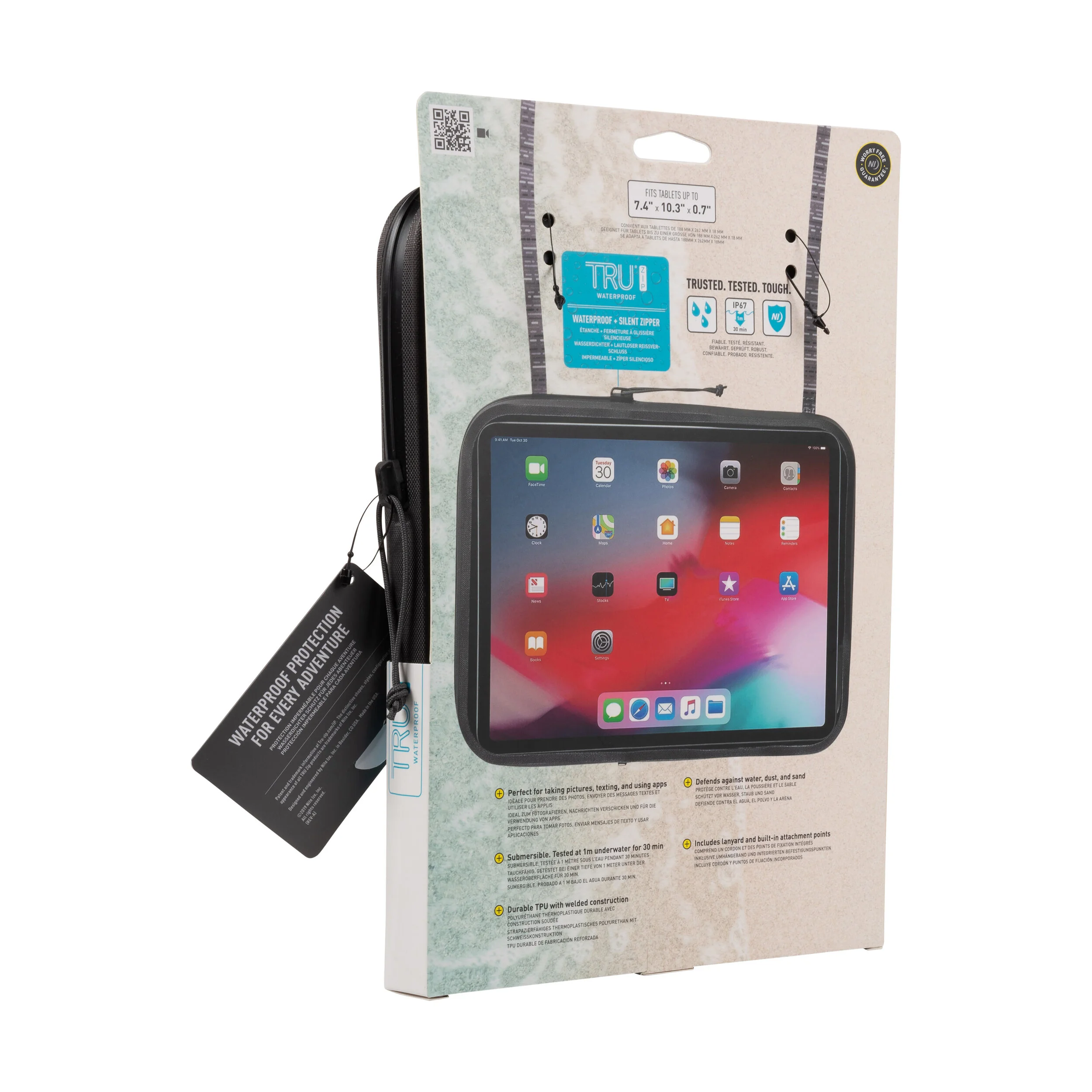 A tablet specific case was packaged in a half-box with an insert added behind the clear front window in the product itself for additional messaging space. This enabled the packaged product to effectively compete against similar, non-waterproof tablet cases on shelf while keeping a smaller overall footprint.